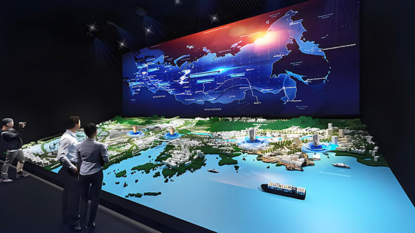 數(shù)字沙盤作為一種結(jié)合了傳統(tǒng)物理沙盤和現(xiàn)代數(shù)字技術(shù)的展示工具,以其直觀、互動(dòng)性強(qiáng)、信息量大等特點(diǎn),在展廳設(shè)計(jì)中得到了廣泛應(yīng)用。它不僅能夠以三維立體的形式展示地理環(huán)境、建筑布局等信息,還可以通過(guò)觸摸屏、虛擬現(xiàn)實(shí)(VR)、增強(qiáng)現(xiàn)實(shí)(AR)等技術(shù)實(shí)現(xiàn)用戶與內(nèi)容的實(shí)時(shí)互動(dòng)。